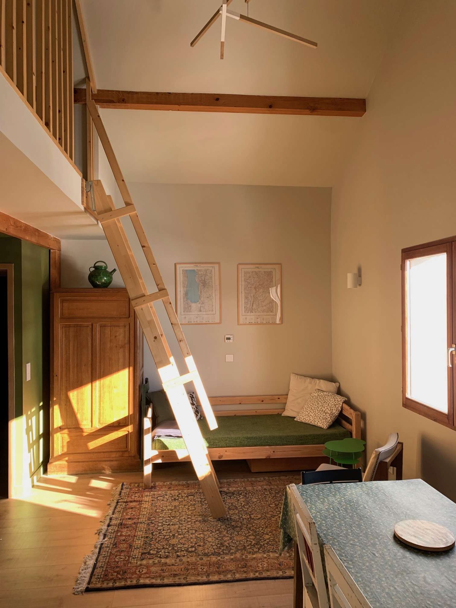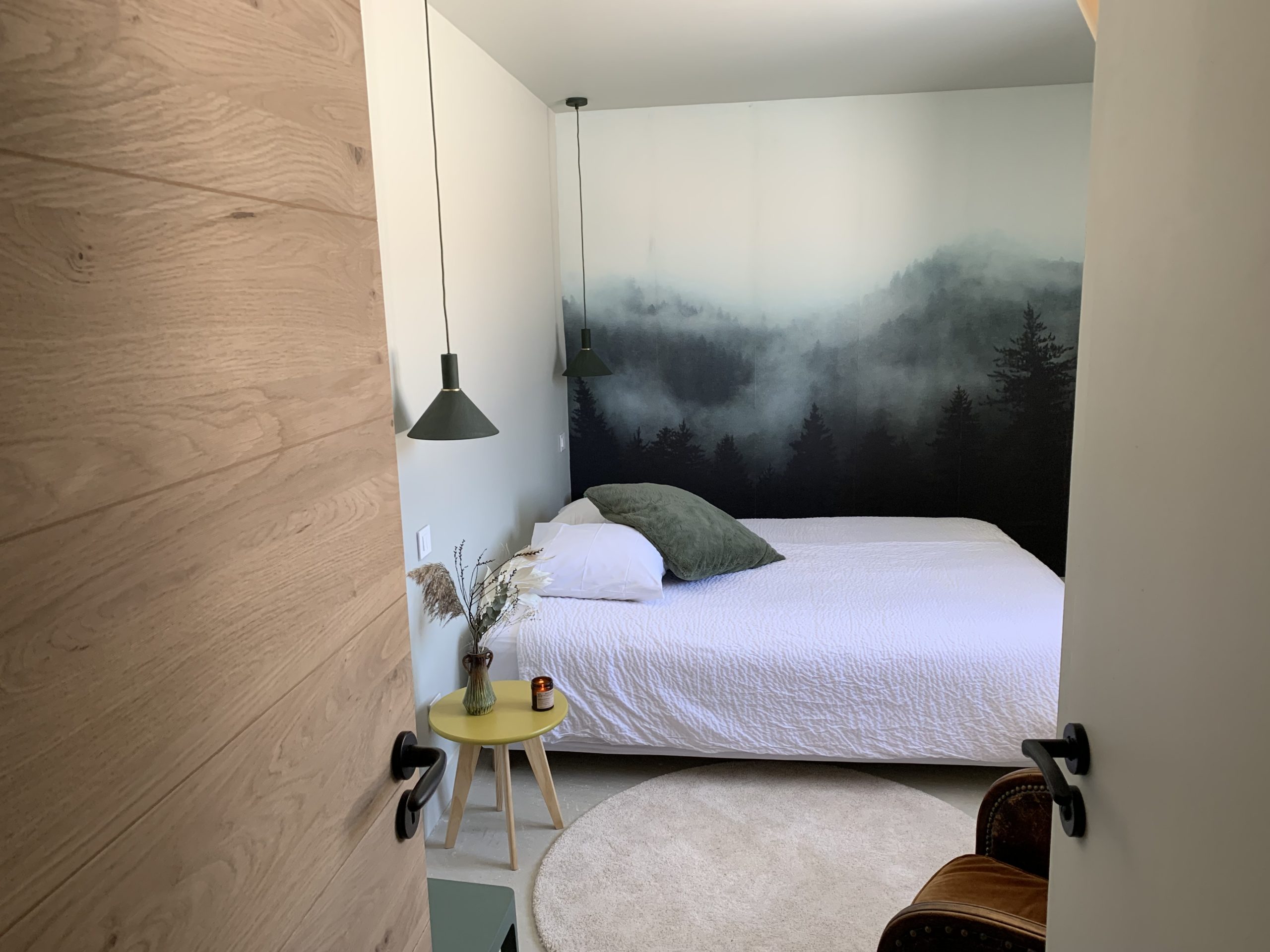 Décoration contemporaine et respectueuse de l’environnement : linge bio, couettes et sur-matelas en laine naturelle française. Cheminée, poêle à bois, …